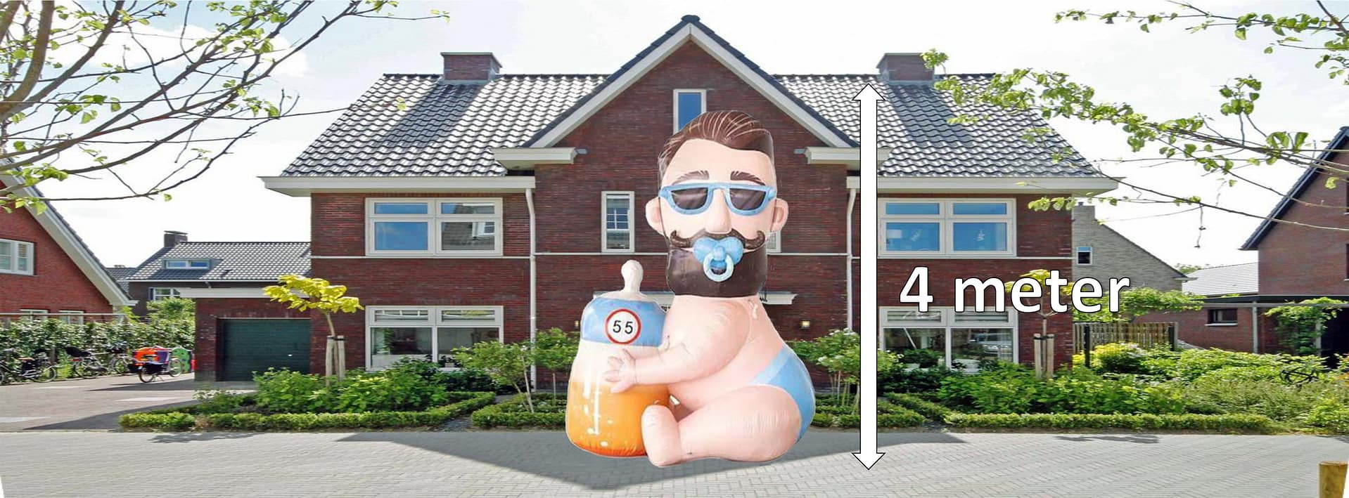 Je hebt van die heren die ieder jaar ouder worden, maar zich blijven gedragen als een klein kind. Dan moet je zeker deze Abraham Baby huren. Deze Abraham Baby is 4 meter hoog en valt daardoor goed op. De buurt zal er smakelijk om lachen, want deze feestpop is uniek en ludiek en ook heel geschikt voor andere leeftijden.