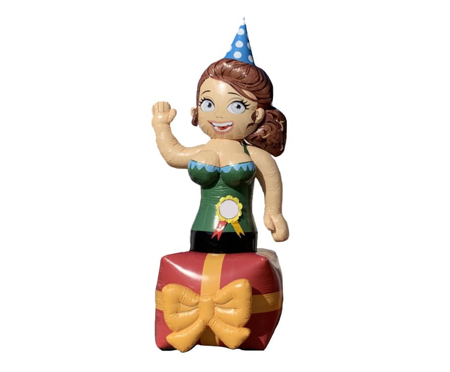 Hieperdepiep hoera! Zoek jij een verjaardagspop iemand die dol op een feestje is? Dan zit je bij Augie Attracties & Events goed. Bij ons kun je namelijk de Opblaasbare Feestpop Surprise huren. Al onze verjaardagspoppen hebben verwisselbare leeftijdsborden. Daardoor zijn alle leeftijden mogelijk. Deze Feestpop Surprise wordt door haar jeugdige uiterlijk veel gehuurd voor een jarige zus, vriendin of collega die bijvoorbeeld 18, 21 of 25 wordt. Maar ook de leeftijden 33, 46 of 53 zijn mogelijk. Daarnaast kun je natuurlijk de Feestpop Surprise huren voor een jarige sarah.