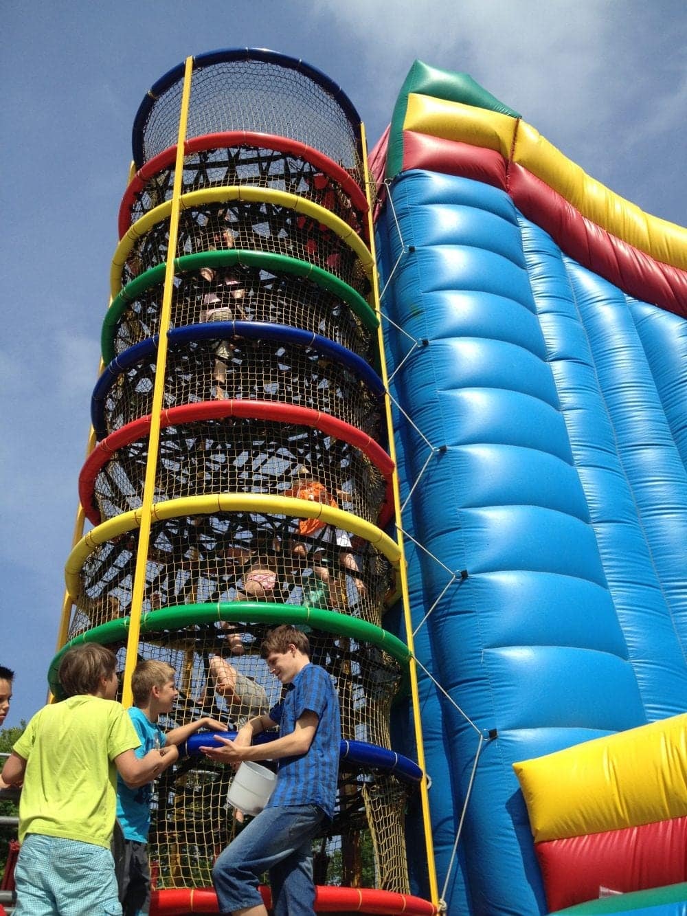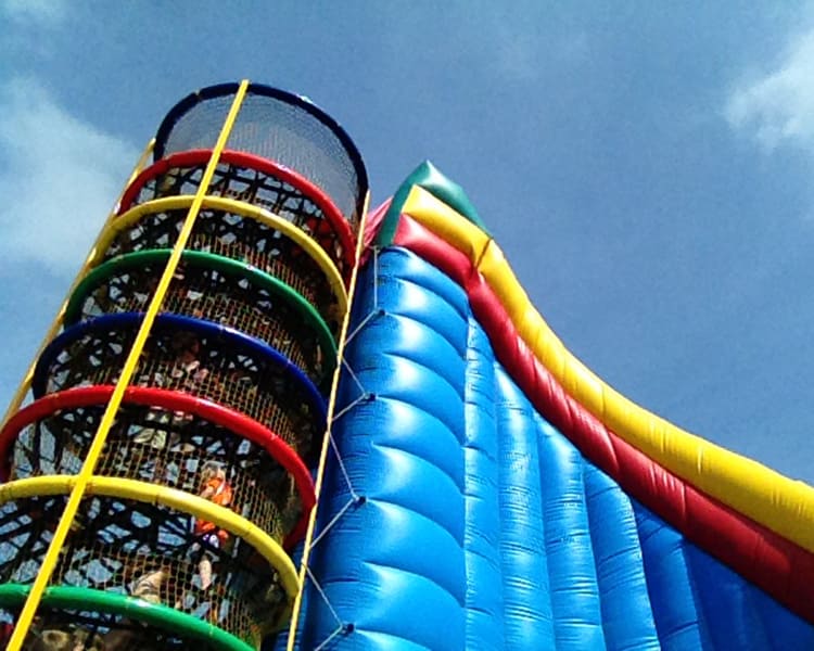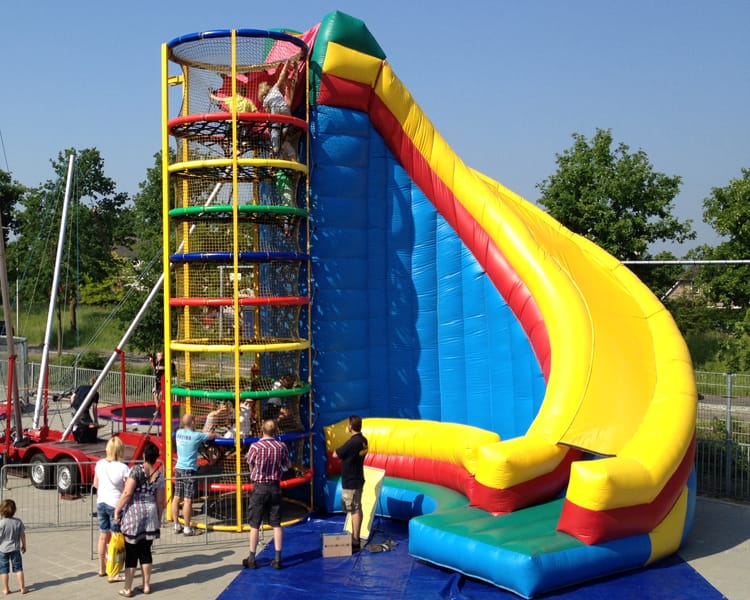 Huur onze Klimtoren Spiderweb of Spider Tower met grote glijbaan. Het is een sensatie in de attractiewereld, blikvanger op uw evenement, spannend voor de kinderen, lekker hoog én de enige in Nederland.