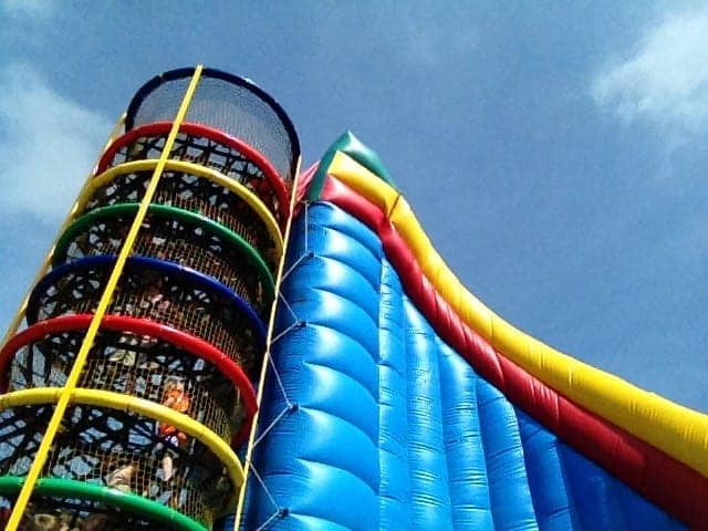 Augie Attractieverhuur heeft een opblaasbare Reuzen glijbaan aan de Klimtoren Spiderweb gekoppeld om de doorstroming nog sneller te laten verlopen. De kinderen hoeven nu niet naar boven en weer naar beneden te klimmen. Maar ze kunnen, boven aangekomen, via de Reuzen Slide (glijbaan) vanaf 8 meter hoogte weer naar beneden glijden. Er kunnen ongeveer 120 kinderen per uur gebruikt maken van deze klimwand in tegenstelling tot een standaard Klimwand, waar slechts 12 tot 16 kinderen per uur naar boven kunnen klimmen.