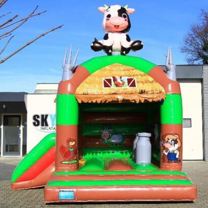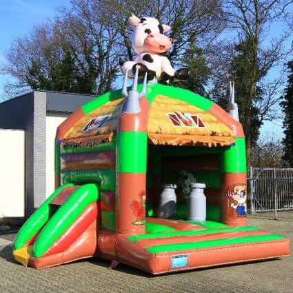 Het Minikussen Boerderij is een klein praktisch kussen voor de kleinere tuinfeestjes, kinderverjaardagen en buurtfeesten. Te huur bij Augie in Dedemsvaart, Overijssel. Ondanks dat het kussen klein is, is er de glijbaan en de melkbussen om lekker mee ravotten.