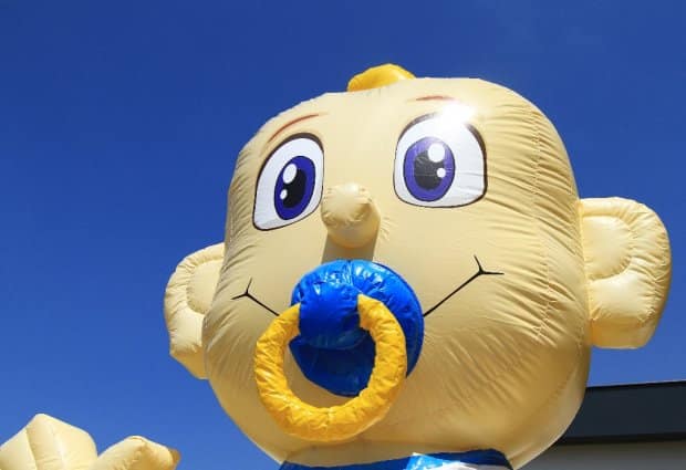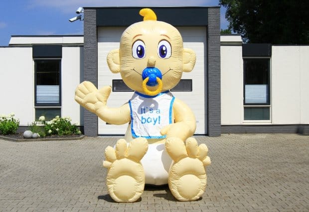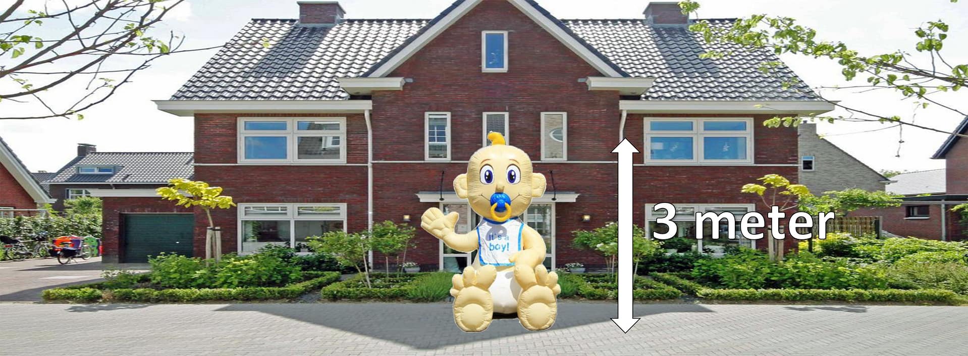 Huur de opblaasbare Baby 3 meter hoog. Bent u de trotse vader en moeder geworden van een zoon en/of dochter? Dan mag dit uitbundig gevierd worden! Laat het de hele buurt weten dat er een baby geboren is en huur deze enorme opblaasbare Baby. Met een hoogte van maar liefst 3 meter torent hij boven iedereen uit.