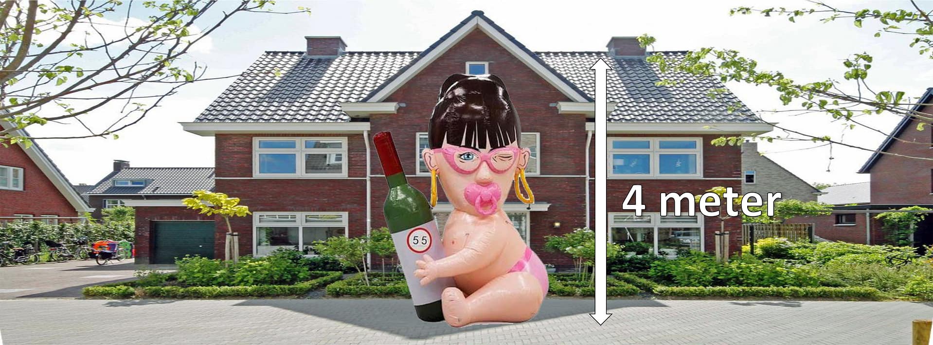 Je hebt van die dames die ieder jaar ouder worden, maar niet ieder jaar automatisch ook volwassener. Gedraagt de jarige zich nog regelmatig als een kind? Dan moet je deze Sarah Baby huren. Deze Sarah Baby is 4 meter hoog en valt daardoor goed op. De buurt zal er smakelijk om lachen, want deze sarahpop is uniek en ludiek.