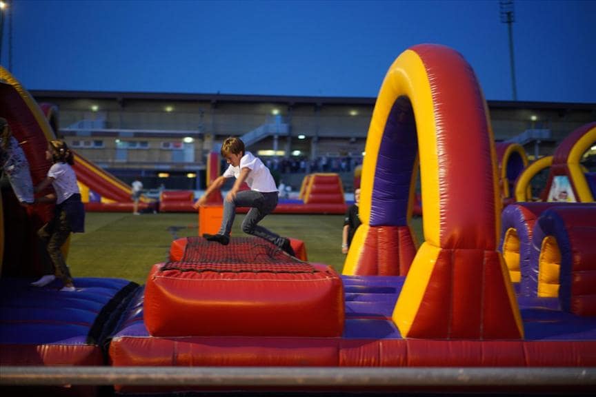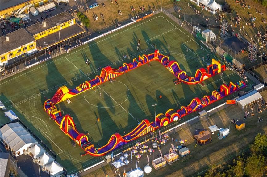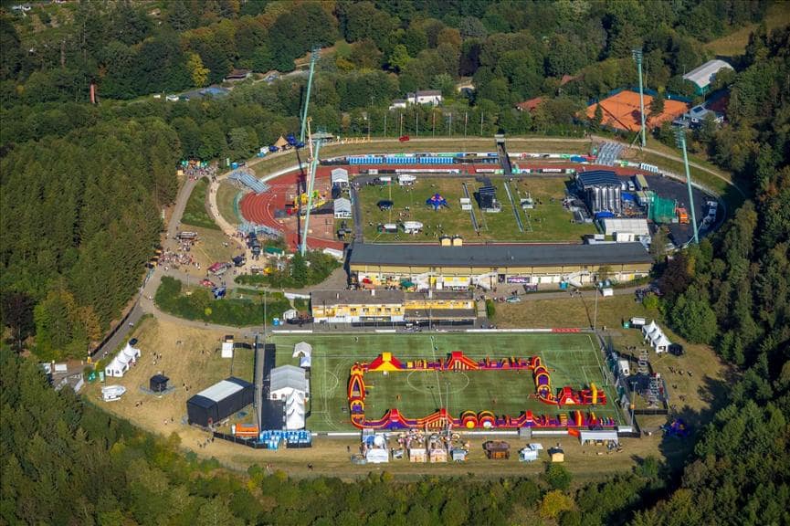 De Stormbaan Lüdenscheid is een 225 meter lange stormbaan, die drie festivaldagen lang heeft gestaan in het Nattenberg stadion in plaats Lüdenscheid Duitsland. Wij hebben de baan met in totaal 49 hindernissen samen met de klant opgebouwd. Lof aan de klant hoe zij de voorbereidingen perfect voor elkaar hadden.