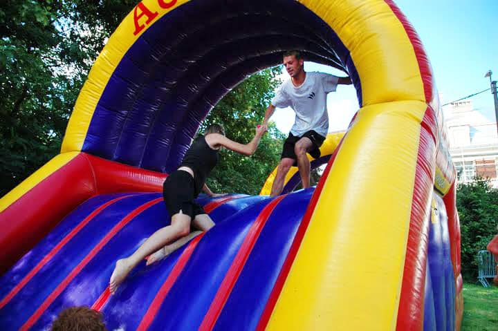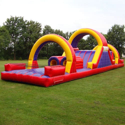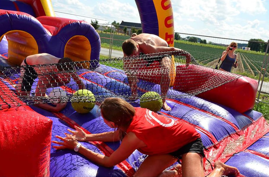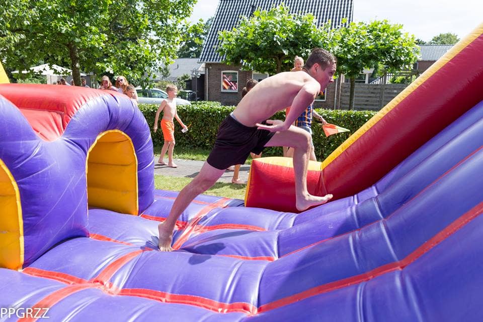 Een stormbaan huren voor een zeskamp is altijd een succes.
