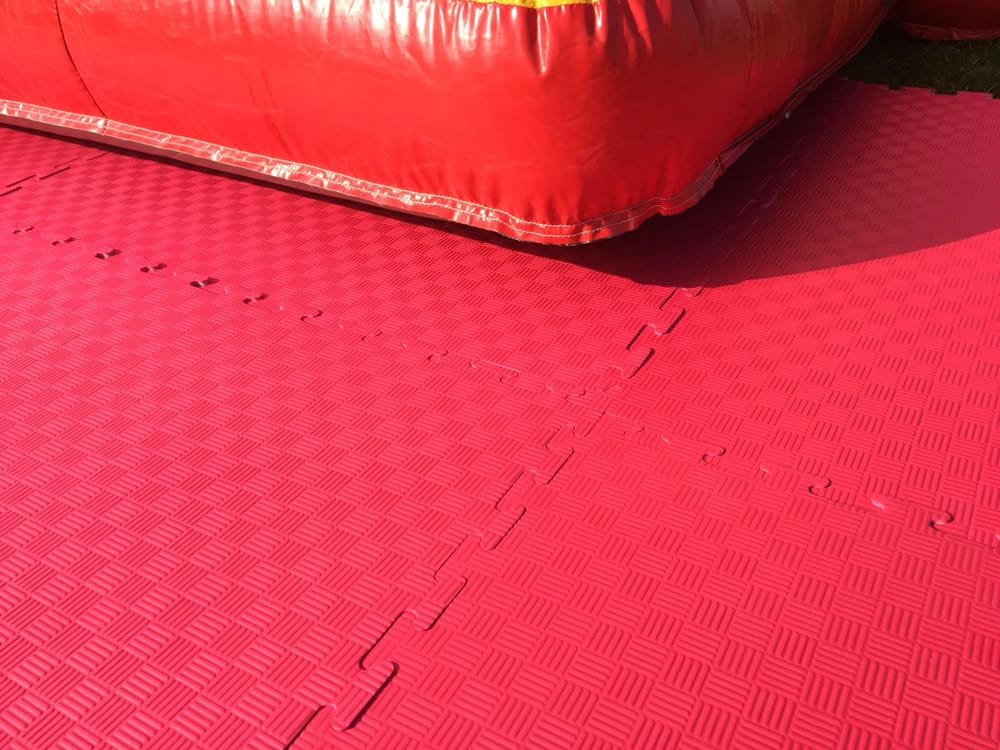 Onze valdempende maten zijn geschikt om bij de instap en uitstap van springkussens te leggen. Ook bij de uitgang van glijbanen en stormbanen is het veilig om valdempende matjes te leggen. De matjes dienen minimaal 120 cm rondom te liggen.